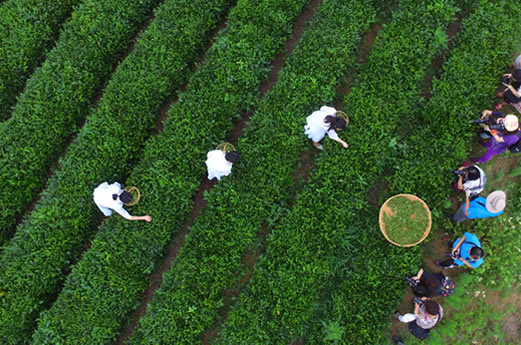 六、茶行间种植的豌豆、苜蓿和金银花让我们瀚林春有机茶具有独特的兰花香,园里种植大量的松柏、枇杷树、金镶玉竹等植物形成防护林。
