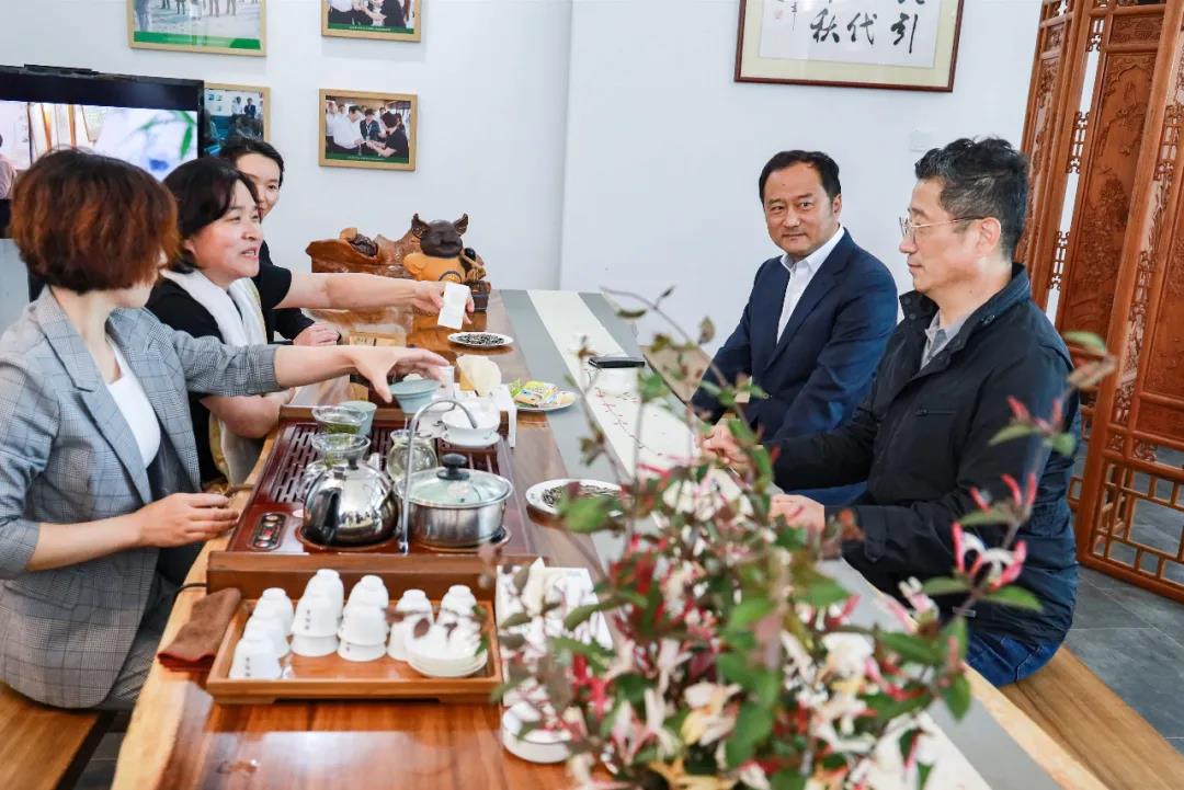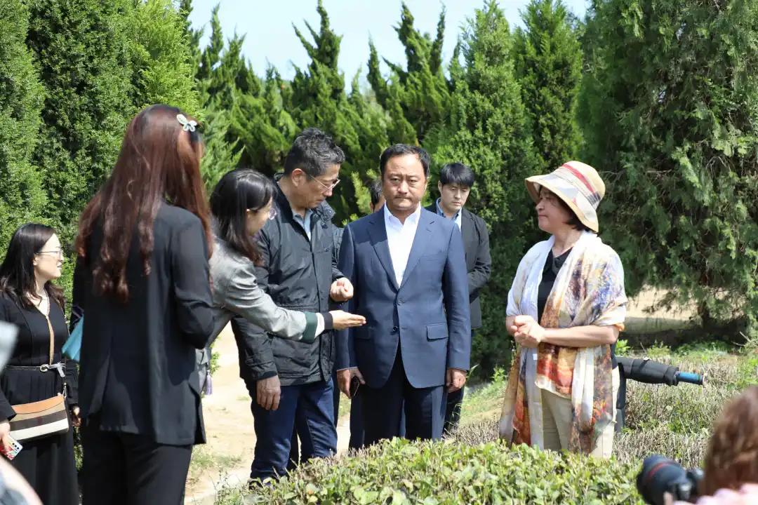5月20日下午,韩国驻青岛总领事馆总领事金敬翰一行在日照市外事办主任吴乃军等陪同下,到国家级瀚林春有机茶博园考察。