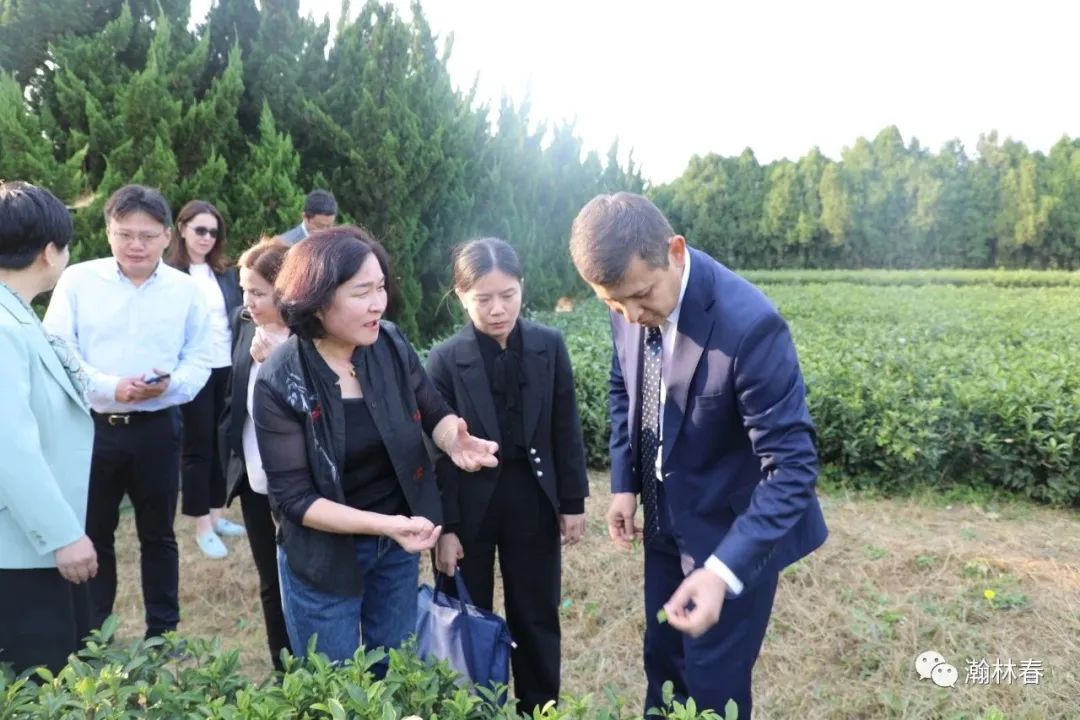10月17日下午,乌兹别克斯坦塔什干州帕肯特区区长沙合鲁一行考察团到瀚林春茶博园进行调研。日照市人民政府副市长张金梅、办公室副主任岳涛、外事办公室主任吴乃军等领导陪同,山海天管委会主任袁利强和农业农村局局长王安雷等领导参加考察。