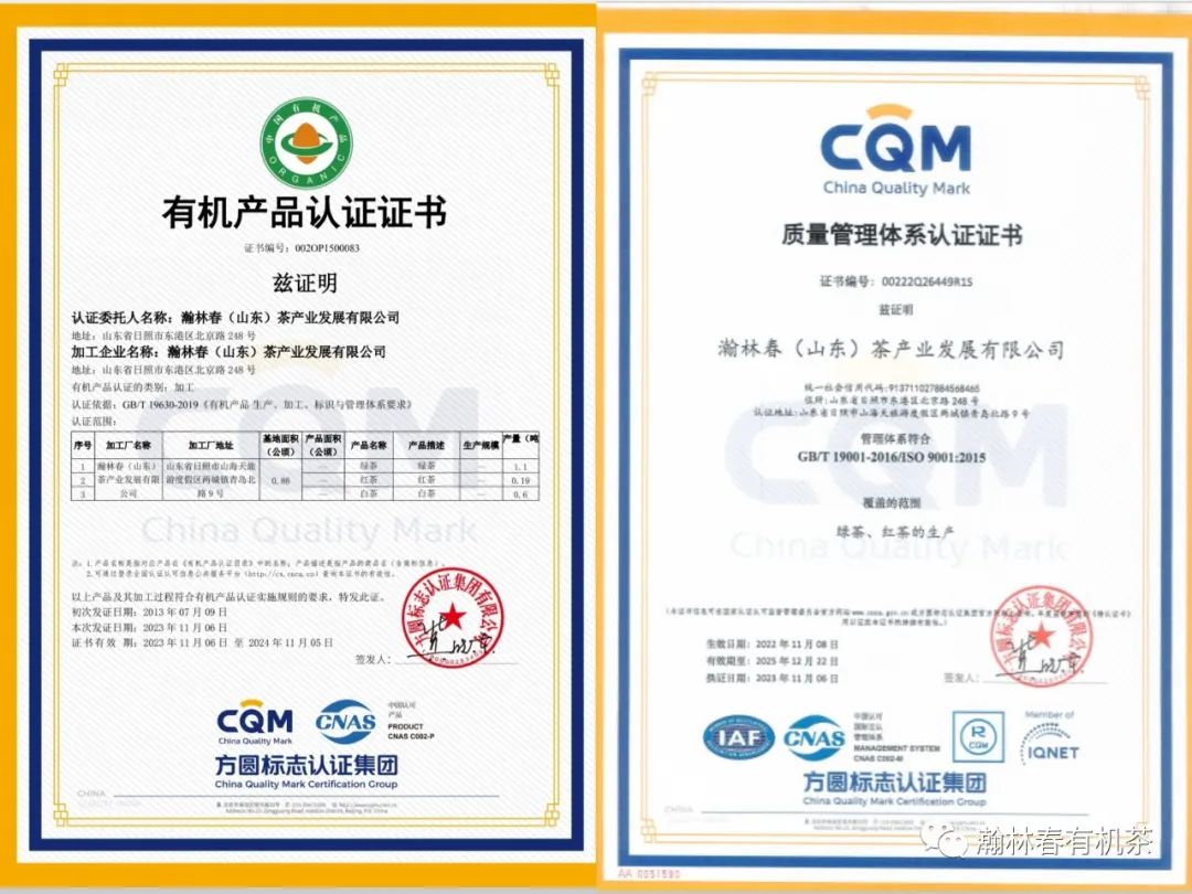 10月8日,瀚林春顺利通过2023国家有机认证和ISO9001:2015质量体系认证